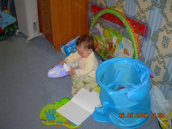 Пупс прелесть, уже проявляет самостоятельность, ну и что что сама не стоит - всему свое время.